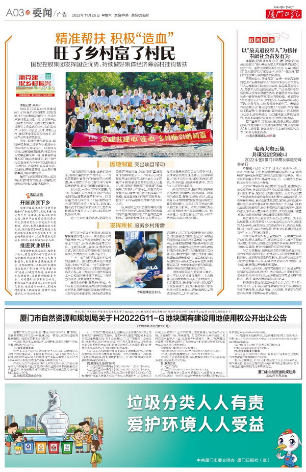 發(fā)揮企業所長(cháng),服務鄉村所需。今年以來,國(guó)貿控股系統内投資企業瞄準鄉村需求,將(jiāng)幫扶落到(dào)實處:國(guó)貿資本公司發(fā)揮金融主業優勢,在保障資金安全的前提下,利用可供投資村财為啟動資金,擇優推薦經(jīng)營穩定、現金分紅率較高的投資項目和信托計劃等市場主流投資産品,以期增加蓮塘村集體資産收益;海翼租賃公司協助推動三忠村與同翔高新指揮部對(duì)接,發(fā)揮工程機械租賃方面(miàn)業務優勢,争取甯德時(shí)代部分工程機械項目落地;國(guó)貿股份公司、廈工股份公司、海翼國(guó)貿公司分别立足自身優勢,積極探索發(fā)展壯大村集體經(jīng)濟的有效路徑,挂鈎村集體經(jīng)濟預計增收20萬元。