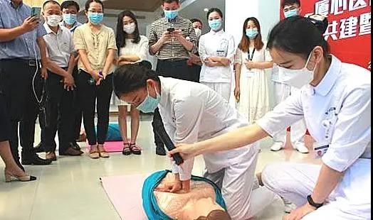 昨日上午,廈心門診大廳内,現場就(jiù)醫的患者和來自國(guó)貿股份的黨員志願者近百人,認真聽取了心肺複蘇術基本步驟及AED操作方法的現場講授。本次心肺複蘇培訓是廈心黨委與國(guó)貿股份黨委黨建共建的一項重要内容。