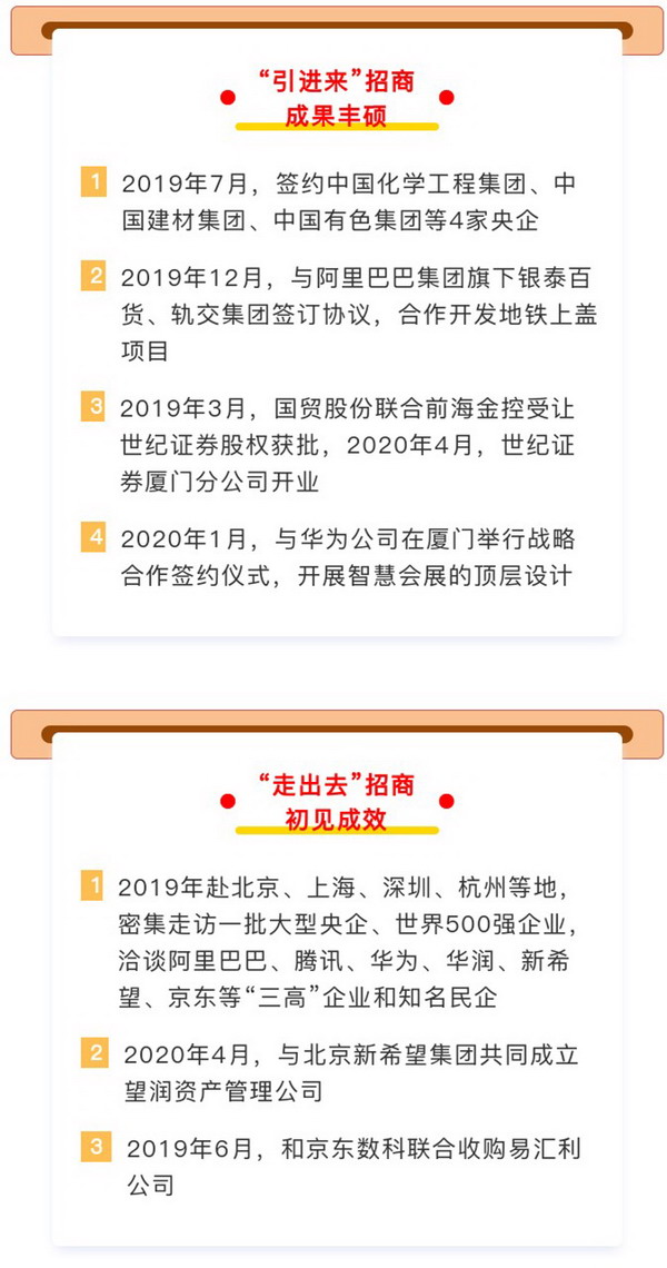 自2019年4月廈門市招商大會(huì)召開(kāi)以來,國(guó)貿控股集團積極“走出去、引進(jìn)來”,招商引資成(chéng)果顯著,旗下國(guó)貿股份在今年廈門市招商總結表彰會(huì)上榮獲“招商引資工作先進(jìn)集體”稱号。