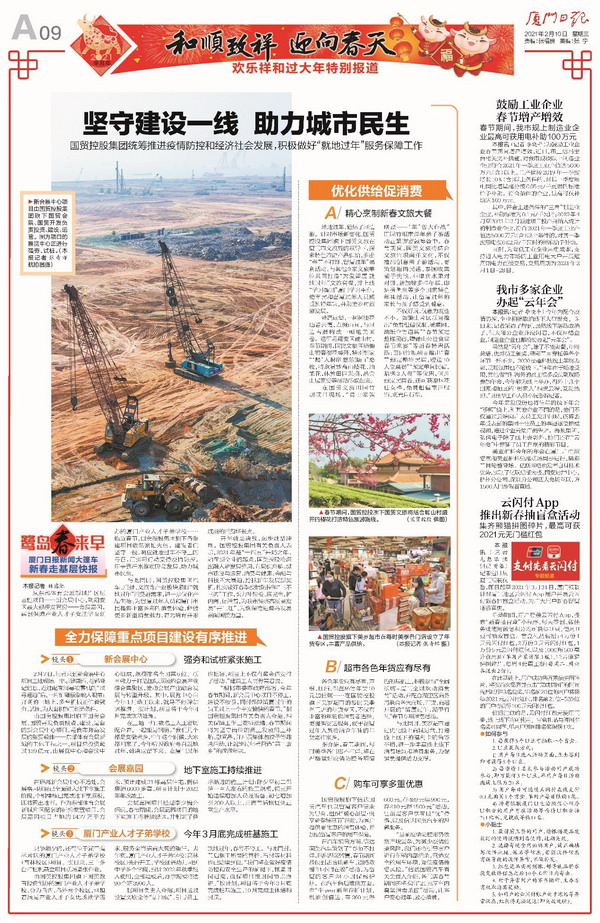 新春將(jiāng)至,廈門日報“新春走基層”專欄,以《堅守建設一線 助力城市民生》對(duì)國(guó)貿控股集團統籌推進(jìn)疫情防控和經(jīng)濟社會(huì)發(fā)展,全力保障重點項目建設有序推進(jìn),服務保障“就(jiù)地過(guò)年”工作推出特别報道(dào),以下為報道(dào)全文。