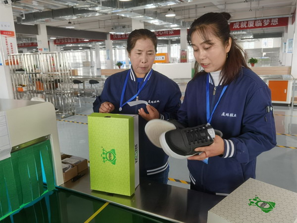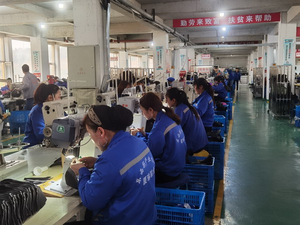 ▲建在村民家門口的扶貧工廠有效帶動就(jiù)業。圖為廈臨公司設立的廈琳鞋業生産車間。