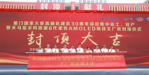 5月7日上午,由國(guó)貿控股集團牽頭參與投資的廈門天馬顯示科技有限公司第6代柔性 AMOLED 項目主廠房封頂儀式于廈門火炬高新區順利舉行。