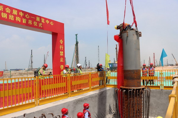 首個鋼結構落位 展覽中心“露出地面(miàn)”