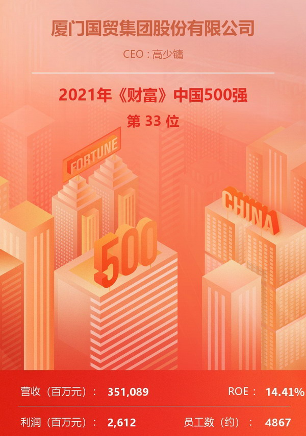 廈門國(guó)貿集團股份有限公司始創于1980年,1996年在上海證券交易所上市(股票代碼:SH.600755),經(jīng)過(guò)四十年的發(fā)展,已成(chéng)長(cháng)為《财富》世界500強國(guó)貿控股集團的核心成(chéng)員企業。公司聚焦供應鍊管理與金融服務兩(liǎng)大核心主業,并積極拓展健康科技新賽道(dào)。公司以供應鍊為核心支柱産業,穩居行業第一梯隊;金融業務專注小牌照業務,内外兼修,最大化地創造内部協同效應。國(guó)貿股份秉承“持續創造新價值”的使命、“創新、恒信、進(jìn)取”的核心價值觀、“激揚無限、行穩緻高”的企業精神,銳意進(jìn)取,不斷創新,緻力于成(chéng)為值得信賴的全球化綜合服務商。