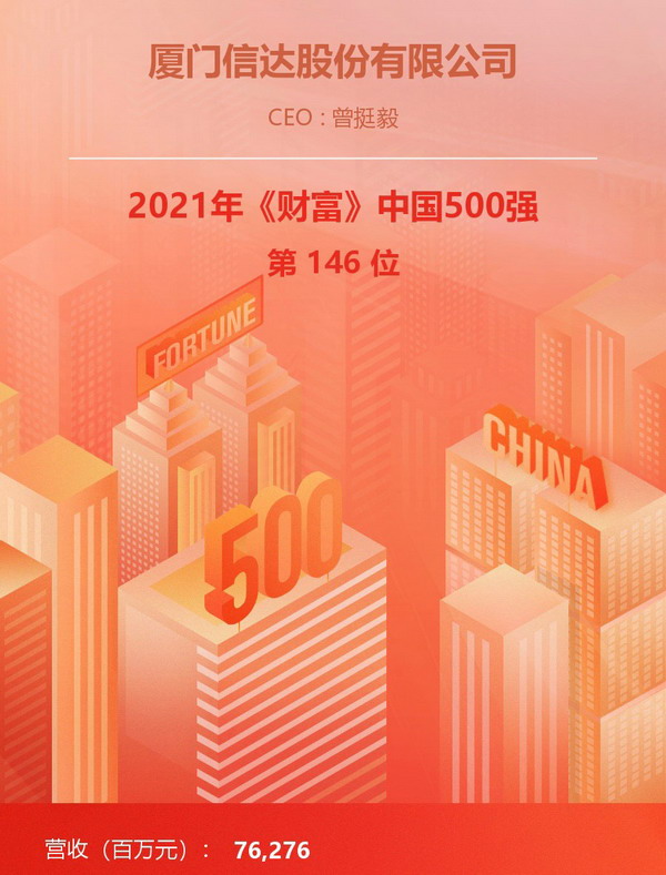 廈門信達股份有限公司始創于1984年,1997年在深交所上市(股票代碼:SZ.000701),是廈門國(guó)貿控股集團的重要成(chéng)員企業。現已形成(chéng)汽車經(jīng)銷、供應鍊、信息科技三大核心業務。公司連續多年入選中國(guó)上市公司500強、全球鐵礦供應商20強、中國(guó)LED照明燈飾行業100強、中國(guó)汽車經(jīng)銷商集團100強。信達股份秉承“信以立足、達則兼濟”的核心價值觀,以“卓越服務、創造美好(hǎo)”為使命,緻力于成(chéng)為具有産業競争優勢的上市公司。