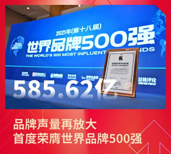 2021年,國(guó)貿控股集團品牌價值達585.62億,首次榮膺世界品牌500強,位居第416位。