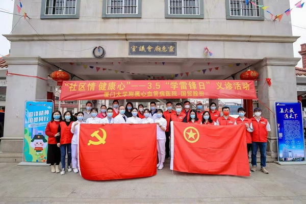 國(guó)貿股份黨委、團委與公司黨建共建單位——廈門大學(xué)附屬心血管病醫院(廈門市心髒中心)在廈門海滄區鳌冠社區開(kāi)展“社區情 健康心——3.5學(xué)雷鋒日義診活動”,向(xiàng)社區群衆提供專家義診,現場教學(xué)心肺複蘇術,并開(kāi)展健康廚房宣教,助力提高市民健康水平,加快推進(jìn)健康廈門建設。