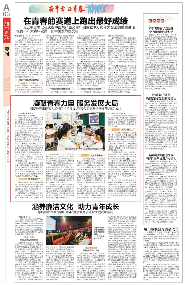 “習近平總書記的重要講話為做好(hǎo)新時(shí)代共青團工作指明了方向(xiàng)。”國(guó)貿控股集團團幹部表示,將(jiāng)牢記總書記囑托,堅持為黨育人,自覺擔當盡責,心系廣大青年,勇于自我革命,用肩膀扛起(qǐ)責任,用實幹創造未來。國(guó)貿控股集團團員表示,學(xué)習了總書記講話後(hòu),更堅定了這(zhè)樣(yàng)的信念:秉持“一流引領、真實擔當、奮鬥為本、共創共享”的企業核心價值觀,養成(chéng)擔當實幹、馬上就(jiù)辦的工作作風,不尚虛談、多務實功,勇于到(dào)艱苦環境和基層一線曆練,為迎接黨的二十大勝利召開(kāi),為廈門加快打造高質量發(fā)展引領示範區、努力率先實現社會(huì)主義現代化貢獻國(guó)貿青年力量。