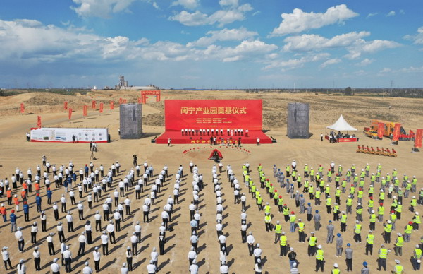 奠基儀式上,銀川市和廈門市領導分别緻辭,國(guó)貿控股集團黨委書記、董事(shì)長(cháng)許曉曦作為企業代表發(fā)言。國(guó)貿石膏礦項目同步啟動并入駐産業園。