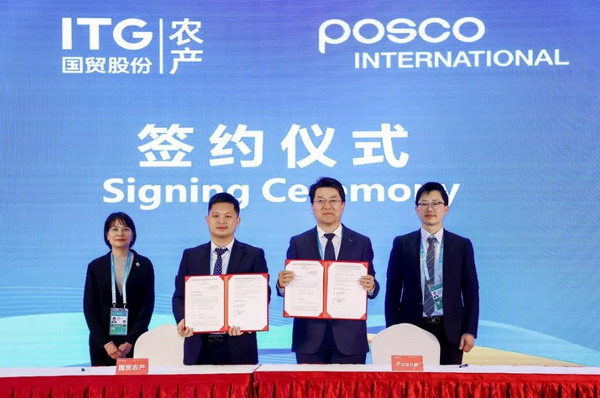 ▲ 第五屆進(jìn)博會(huì)上,國(guó)貿股份與浦項國(guó)際進(jìn)行簽約